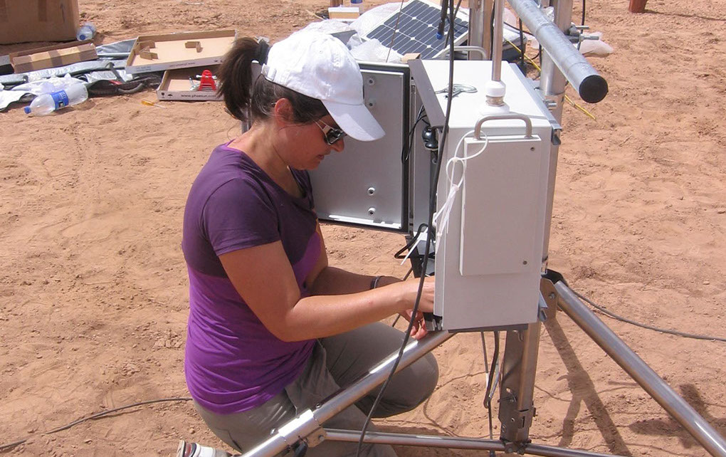 Principal Investigator of Dreams Francesca Esposito with her team from the Osservatorio di Capodimonte in Naples (Italy) has set a mock-up in one of the “Ibn Battuta” test sites in the Erfoud area. Dreams is dedicated to the atmosphere and dust and it's on board the ExoMars 2016 entry, descent and landing demonstration module (EDM) Schiaparelli.
