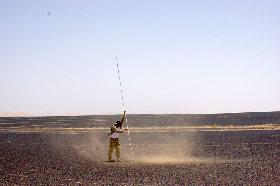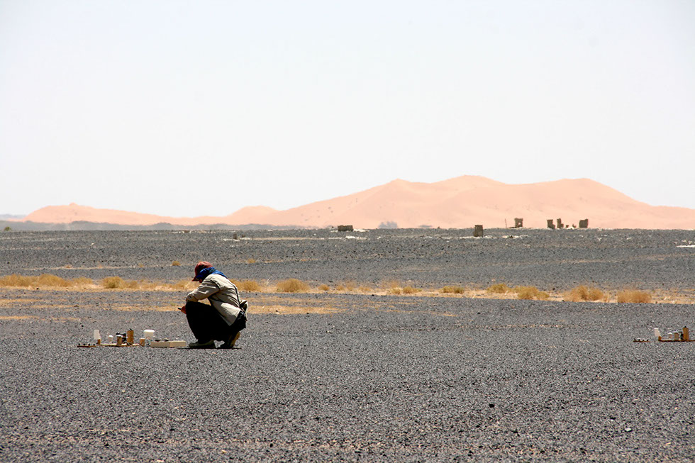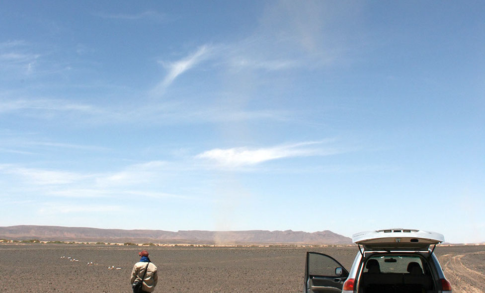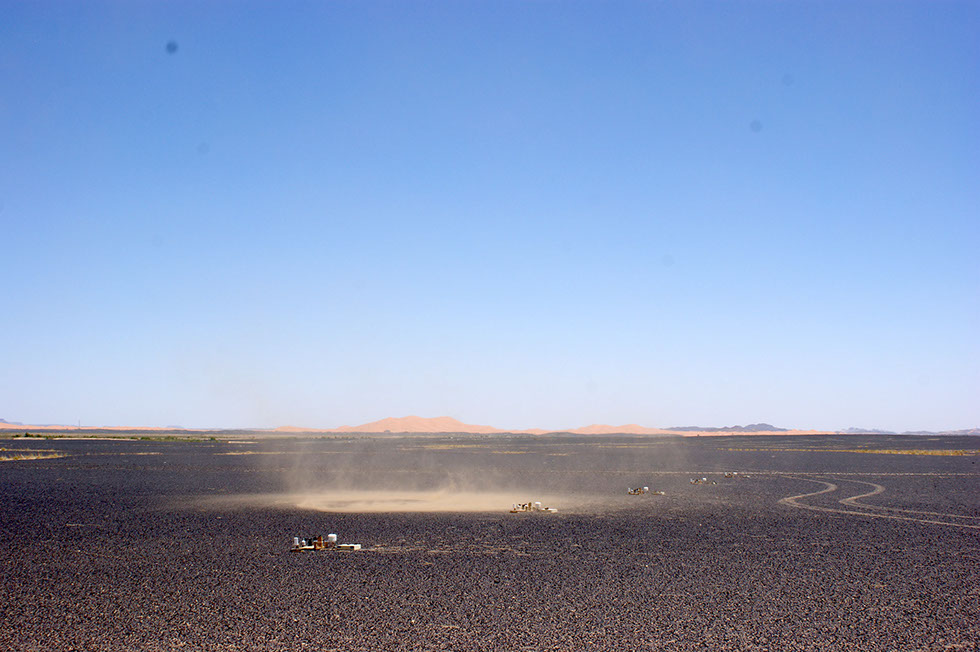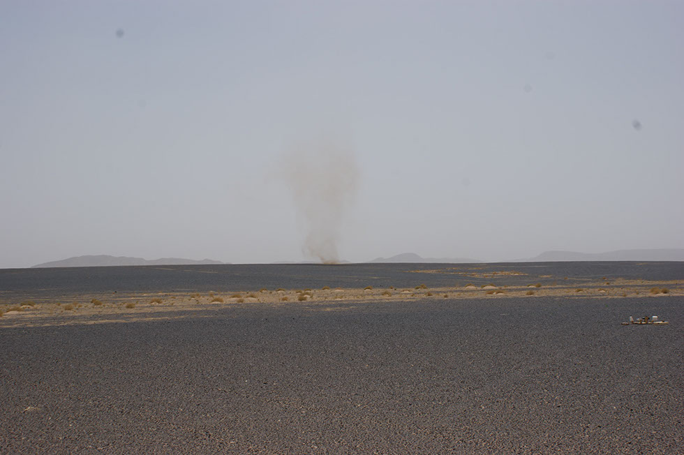 Dust devils significantly contribute to dust entrainment into the atmosphere in Mars, replenishing the background atmospheric dust haze. Vertical convective vortices (dust devils and dustless vortices) on the Martian surface were detected by meteorological instruments on landers or rovers (e.g., Viking Landers 1 and 2, Pathfinder, Phoenix, and Curiosity). In general, convective vortices passing over, near, or at some distance of the meteorological instruments can cause a decrease in pressure, increase in temperature, horizontal and vertical wind speed, and changes in wind direction. However, without the knowledge of additional direct observations (e.g., by imaging) it is difficult to re-calculate if the pressure drop was caused by a convective vortices directly passing over the instrument (lander/rover) or at some distance. This lack of definition regarding the distance causes large uncertainties in the identification of convective vortices and the calculation of convective vortices frequencies at the landing sites on Mars. In addition, the unknown miss distance leads also to uncertainties whether the pressure drop detected was caused by convective vortices or other phenomena as, for example, wind gusts. We set up a linear array of 5 or more stations, each station logging simultaneously horizontal wind speed, vertical wind speed, wind direction, pressure, temperature, solar irradiation, magnetic field, and sound level at a high sampling rate of 4 Hz combined with direct observations of the study area by 2 time lapse cameras with an imaging rate of 1 Hz in the Zagora region (Morocco). The aim of the study is to obtain a comprehensive quantitative dataset of convective vortex signatures which will help to interpret data obtained by past lander/rover missions, the upcoming ExoMars and InSight landing missions as well as future missions on Mars.