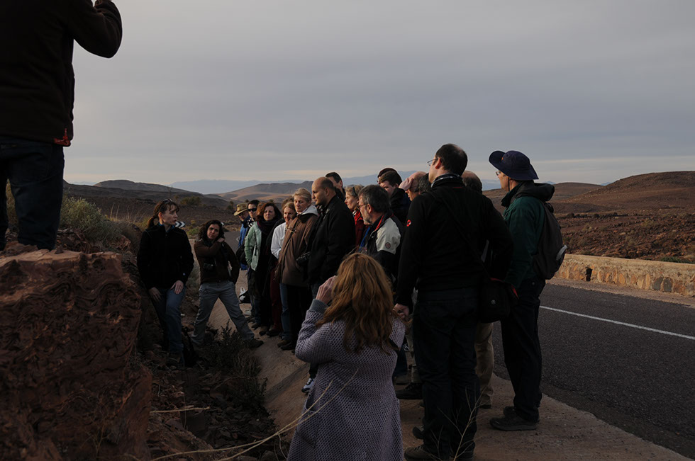 A Post-Meeting field trip was organised in Southern Morocco: Geomicrobiology and Geology from PreCambrian to Quaternary. The field trip brought more than 40 scientists on board of 11 4WD all around the Moroccan Sahara to investigate outcrops of Stromatolites, travertines, mud Volcanoes and more.