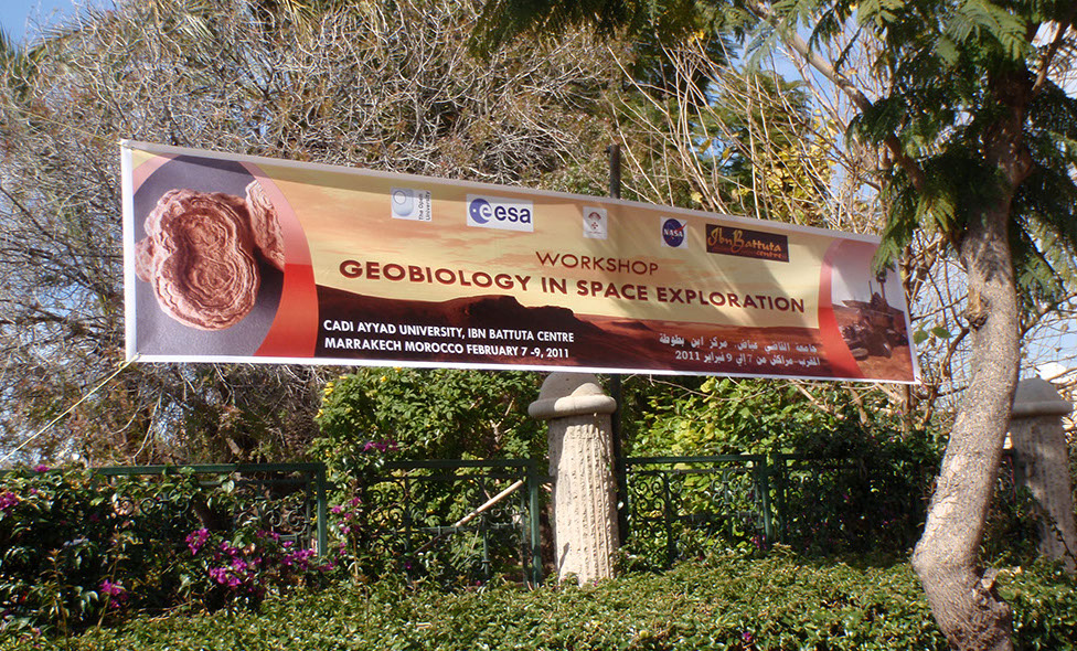 In February 2010 the Ibn Battura Centre organised an ESA and NASA meeting on Geobiology in Space Exploration. The meeting was organised with the support of the ESA Topical Team 'Geomicrobiology for Space Settlement and Exploration (GESSE)' led by Charles Cockell (Open University). Geobiology in Space Exploration addressed the full range of issues of geobiology with some specific core purposes: to contribute to building the community of people working in geobiology and applying it to space sciences and exploration, and to develop a strategic document on the range of geobiology applications and possible space missions for ESA.